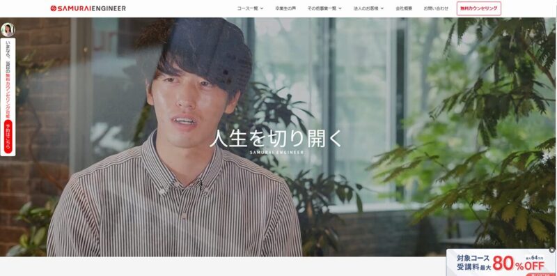 7. 目的に合わせてプログラミングが学べる「侍エンジニア」